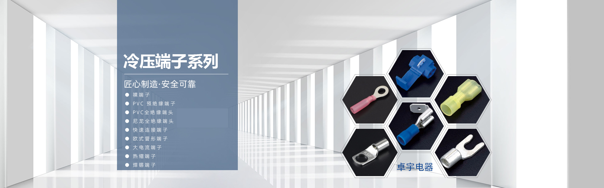 溫州卓宇電器有限公司是專業(yè)生產(chǎn)、銷售各種符合標(biāo)準(zhǔn)的冷壓端頭、接線端子、電氣輔件、及專用工具等。