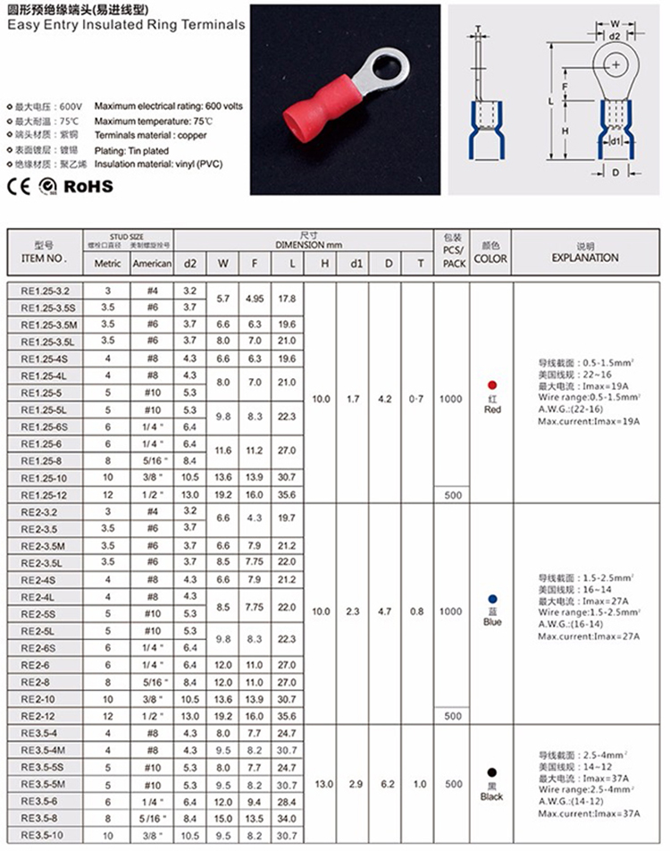 圓形預絕緣接線端子(易進線型)